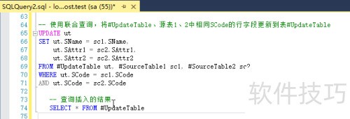 22、 通过联合查询,将源表1和源表2中与UpdateTable具有相同SCode的记录,更新至UpdateTable对应行的字段。