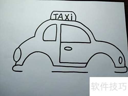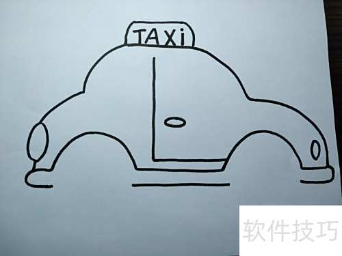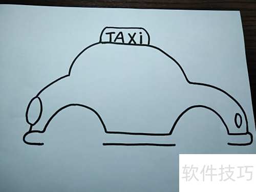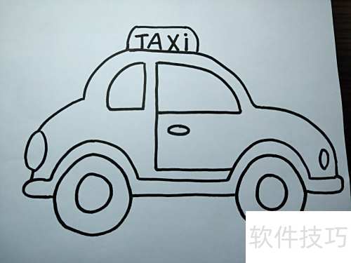 6、 最后画上出租车的轮子,作品就完成了,所示。