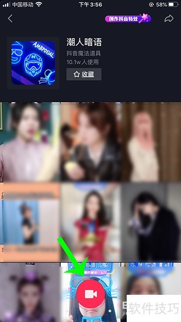 8、 找到潮人暗语道具并点击,进入主视频后选择摄像机图标即可。
