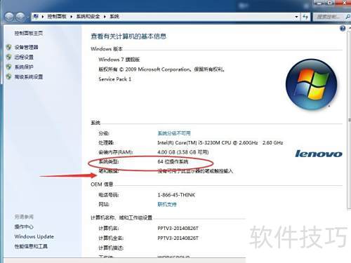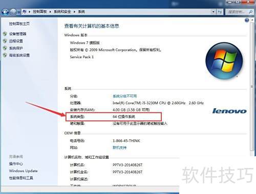 6、 在计算机属性页面中,可查看系统信息,确认当前操作系统为64位版本。