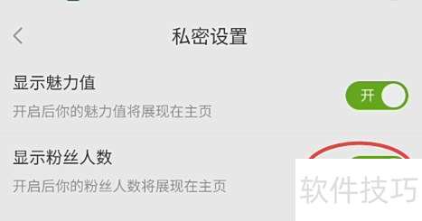 、 进入隐私设置,点击显示粉丝数右侧开关即可隐藏。