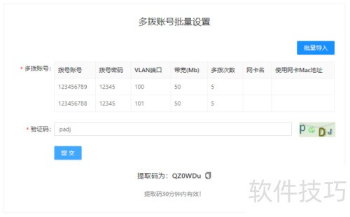 8、 VLAN端口、带宽及多拨次数仅限填写数字,含前导零的账号需完整准确输入,避免识别错误。