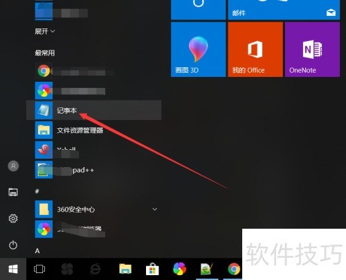 1、 启动电脑后,进入程序列表找到记事本并点击打开,操作所示。