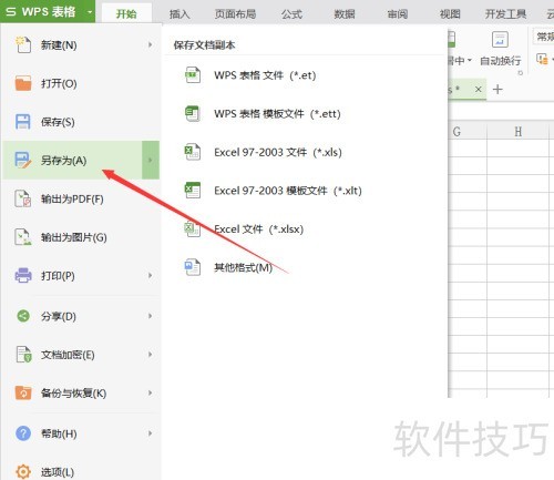 7、 打开WPS表格,选择另存为功能,操作步骤所示。