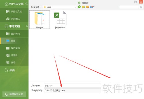 8、 在WPS的另存为窗口中,选择文件类型为CSV即可完成保存。