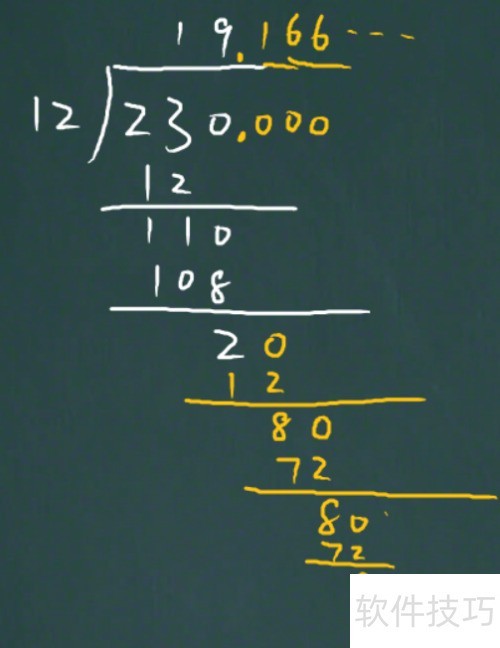 7、 重复第六步仍余8,说明该小数除法无限循环,无法终止。