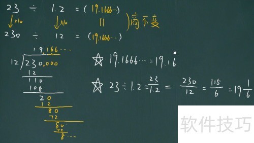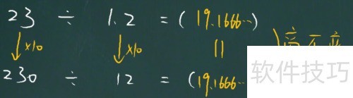 1、 依据商不变规律,把23÷1.2转化为230÷12,即被除数和除数同时扩大十倍。