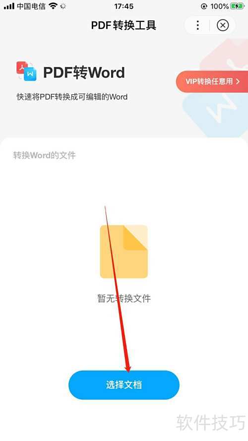 3、 进入PDF转换工具页面后,点击底部的选择文档按钮。