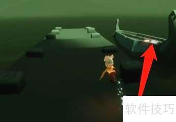 3、 乘小船前往下图所示的隐秘区域。