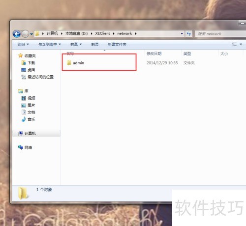 4、 安装完毕后,在根目录新建network文件夹,并在其内创建名为admin的子文件夹。