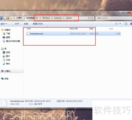 5、 在admin目录中新建一个名为tnsnames.ora的文件。