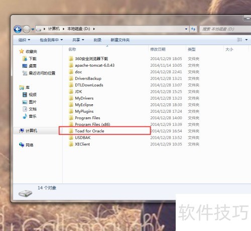 7、 将Toad for Oracle解压至任意目录,例如D盘根目录。