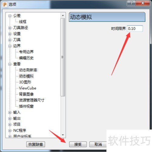 在PowerMill 2017中,将时间限界设为0.1的方法如下:进入加工参数设置界面,找到时间限界选项,输入数值0.1,确认保存即可完成设置。