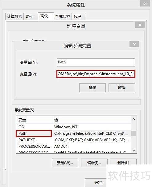 4、 把D:oracleinstantclient_10_2路径加入系统环境变量path里。