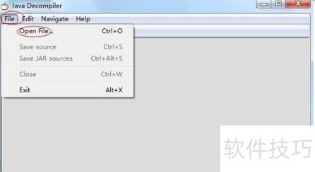 4、 选择文件菜单中的打开文件,加载需要反编译的class文...
