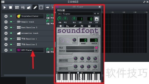 1、 打开软件后,把sf2 player插件拖入歌曲编辑界面即可。