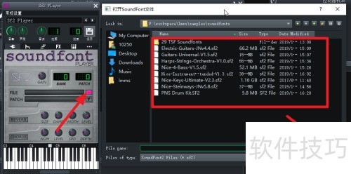 3、 点击文件夹图标,选取已下载的sf2文件并打开
