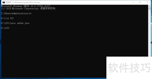 3、 输入d:并按回车键进入D盘,因Java文件存放于此。