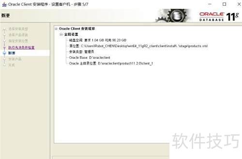 6、 配置完毕后点击完成,启动Oracle客户端安装。