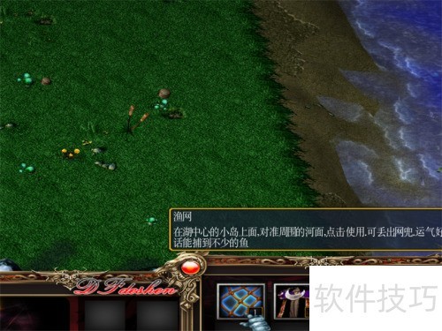 6、 来到河边,点击同伴的渔网,选好位置后投掷出去。