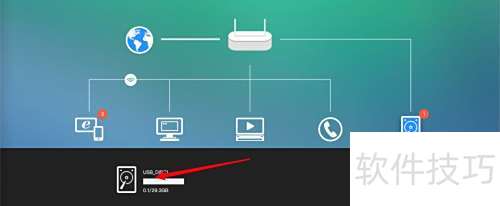 4、 在网关中开启存储功能,点击黑色存储图标,即可通过网页查看U盘容量。