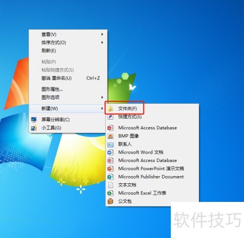 右键点击桌面空白处,选择新建,然后点击文件夹即可。