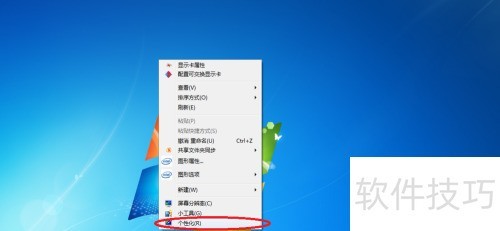 2、 返回桌面后,右键单击鼠标,弹出操作窗口,点击其中标有红圈的个性化选项即可。