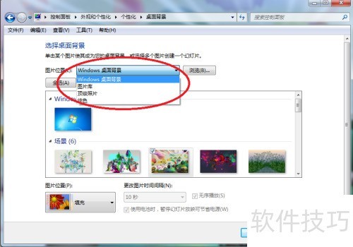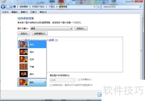 7、 选择所需图片后,左下角有填充选项,可依喜好设置填充方式,本例中选用常规平铺效果进行展示。