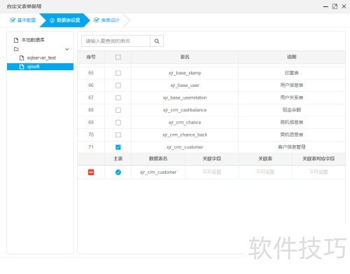 3、 点击下一步,进入表单数据表配置界面,所示。