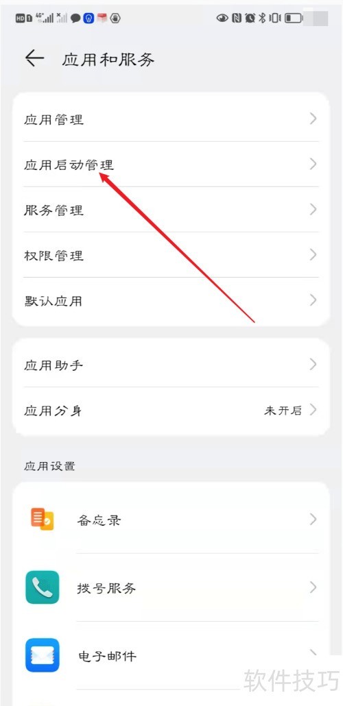 3、 进入应用启动管理设置