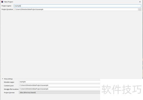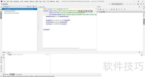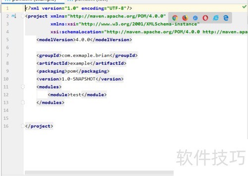 5、 继续点击下一步,选择项目保存路径,确认模块名称后点击完成即可进入开发界面。首次打开的文件为pom.xml,该文件用于配置项目所需的依赖库、插件及模块信息,是项目构建的核心配置文件,便于管理项目的资源与功能扩展。
