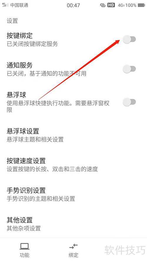 2、 进入易按键 > 设置,选择按键绑定进行配置。
