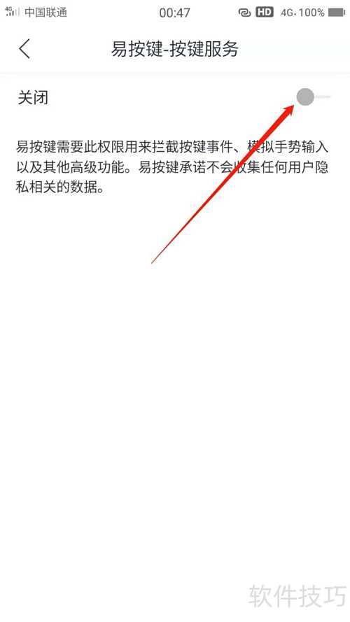 3、 进入易按键-按键服务页面后,开启底部的开关选项。