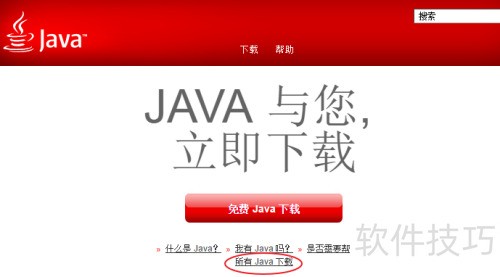 2、 访问Java官网,找到并点击页面下方的全部Java下载选项。