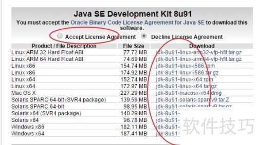 5、 同意条款后选择所需版本的JDK下载,完成后进行安装即可。