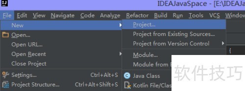 6、 启动IntelliJ后,选择文件菜单中的新建项目选项来创建一个新工程。