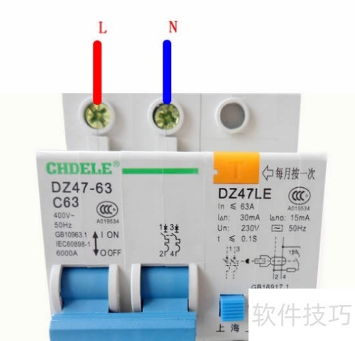 3、 漏电保护器标有电源侧和负荷侧,严禁反接。若接反,电子式保护器的脱扣线圈将无法断电,持续通电可能导致线圈烧毁。