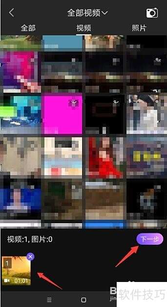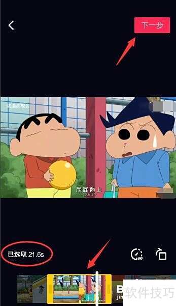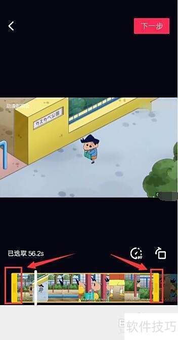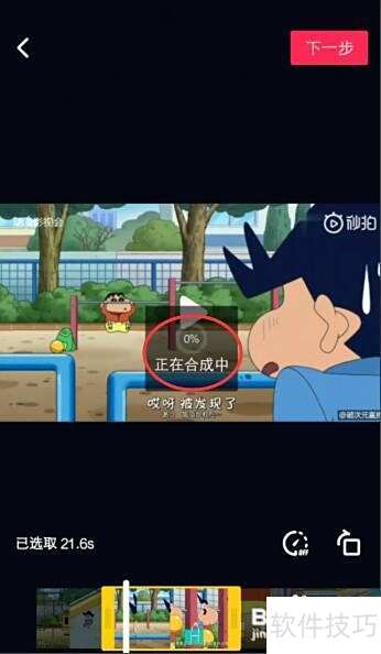 6、 在进行剪辑操作时,视频将从你选定的起始位置开始播放。若发现播放位置不准确,可拖动黄色标记线重新调整剪辑范围。确认无误后,点击右上角的下一步,即可进入视频合成准备阶段,继续后续操作流程。
