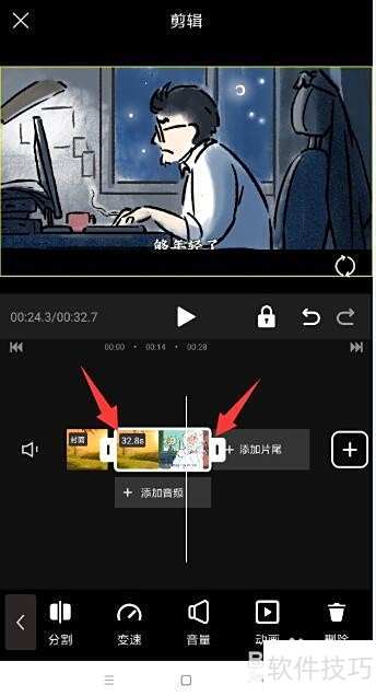 12、 通过滑块可裁剪视频多余片段,同时支持调整相关效果设置。