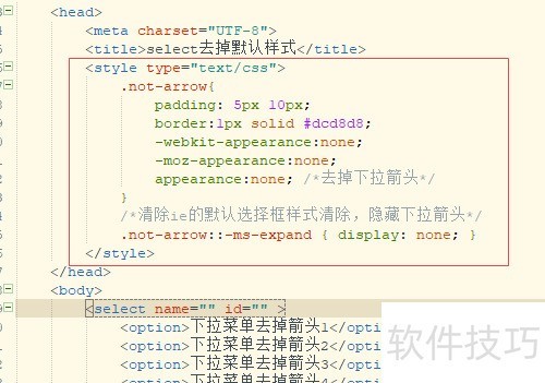 4、 移除下拉菜单中的默认箭头样式,实现自定义外观。