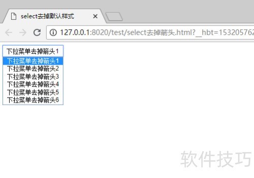 16、 保存网页代码后用浏览器打开,可发现select元素的下拉箭头已消失。