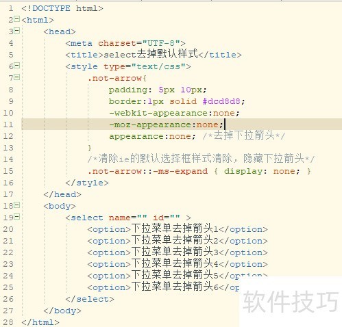 28、 移除下拉菜单中的箭头样式,实现简洁显示效果。