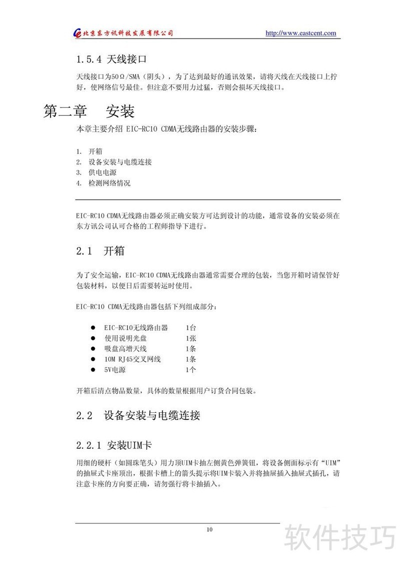 、 本文是EIC-RC20 CDMA路由器使用手册,详细介绍了该设备的使用操作方法及常见问题处理方案。