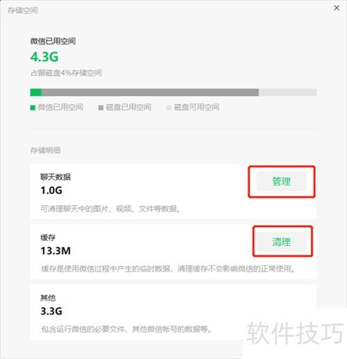 4、 进入存储管理界面后,可进行聊天数据管理与缓存清理操作。