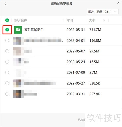 5、 通过聊天数据管理功能,可选择特定联系人进行数据清理。