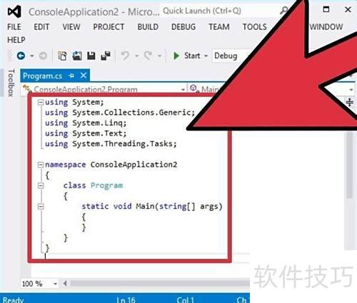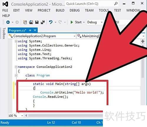 5、 在静态主函数的参数字符串数组后,于首括号内紧接着输入指定内容。