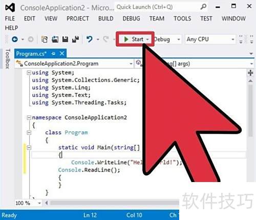 7、 点击工具栏运行按钮,程序将自动编译并执行,恭喜你成功运行!