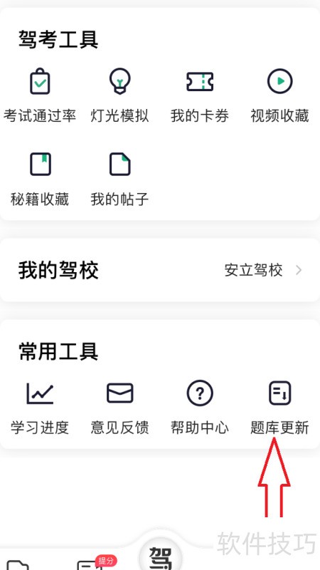 2、 进入驾校一点通个人页面,点击题库更新即可。