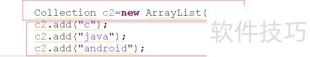 2、 通过add()方法可向指定集合添加元素,例如将字符串java加入集合中。