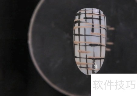 5、 用勾线笔蘸驼色甲油,纵向绘制虚实线条,晾干固化。